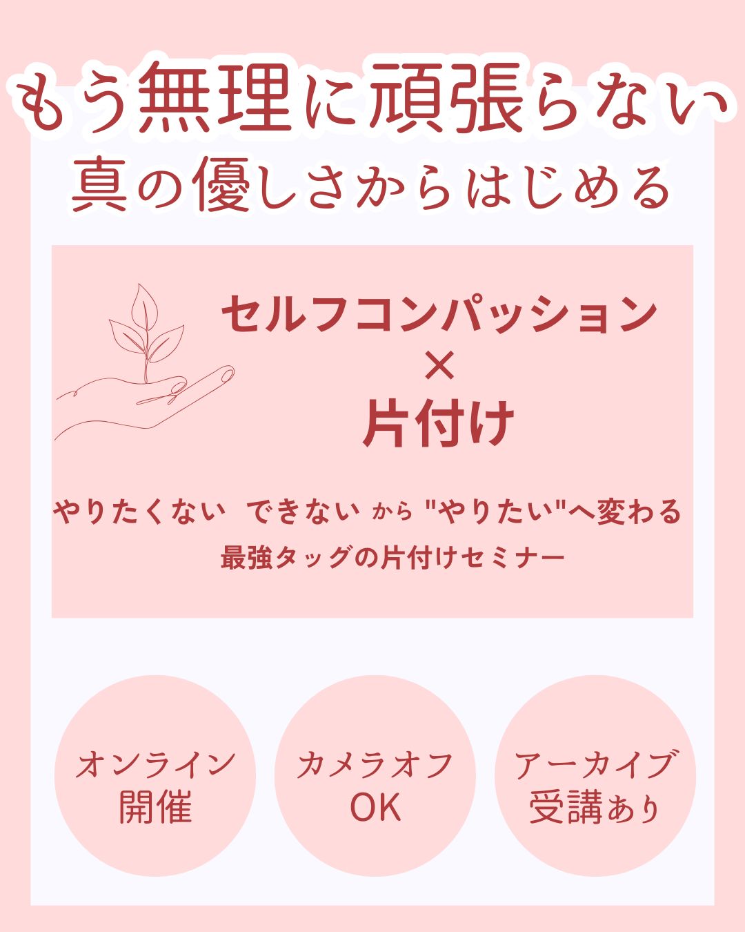 もっとセルフコンパッションを学んで、そして、さらにリバウンドしない片付けの手順を学び家を片付けきりませんか?