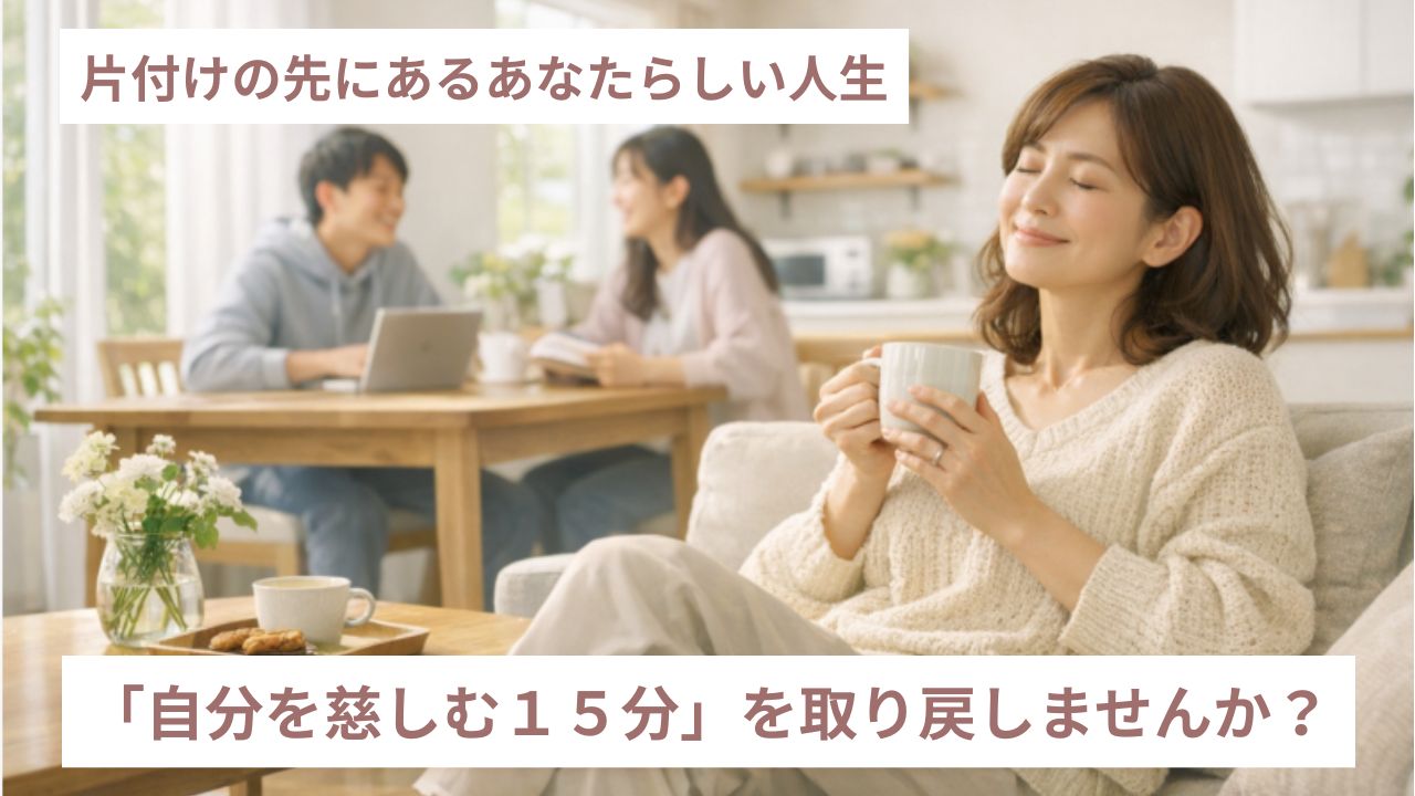 もし家と心が整っていたら、その15分は自分を癒やすコーヒータイムや成長したお子さんと何気ない会話を交わす時間に変わっていたはずです。